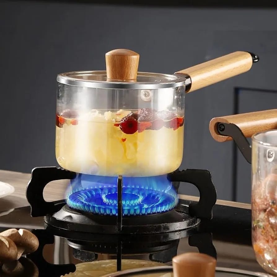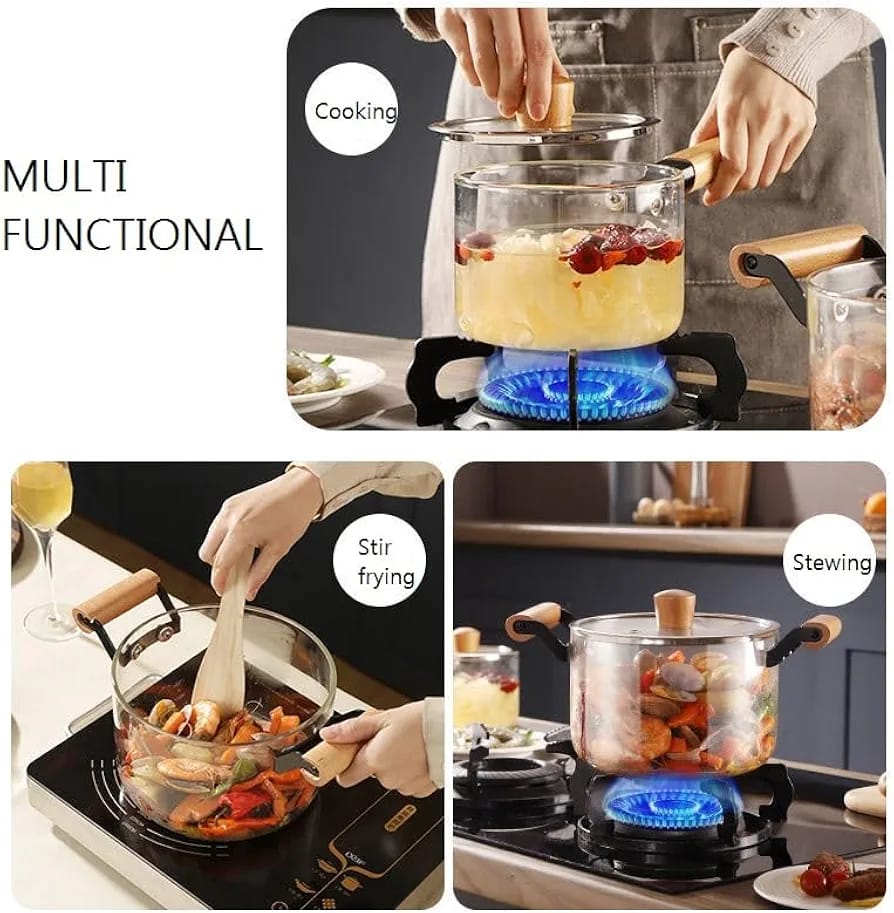 * Heat-resistant: The high borosilicate glass saucepans with lid withstands temperature.