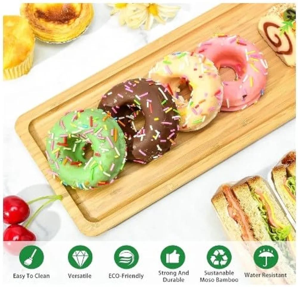 This serving platters is made from durable all natural bamboo,which make food serving boards strong and long lasting. Each food tray comes with two grooves make it easier to carry and also sturdy sit down the ladder.