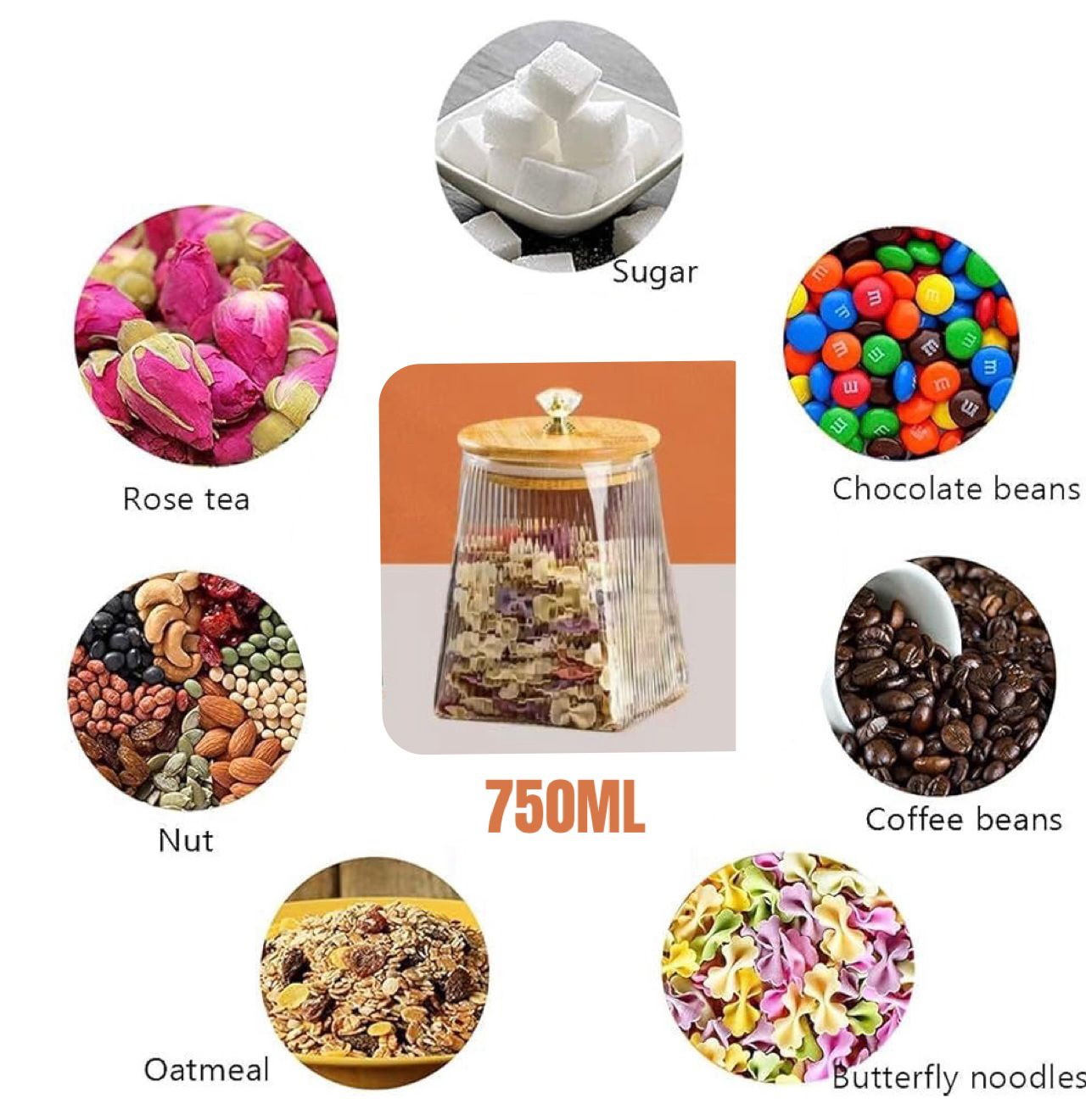 - Perfect Addition To Your Kitchen For Storing Food & Spices Including Powder Spices, Whole Spices, Tea, Coffee, Whole Nuts, Pastas, Cereals, Chocolates, Candies & More