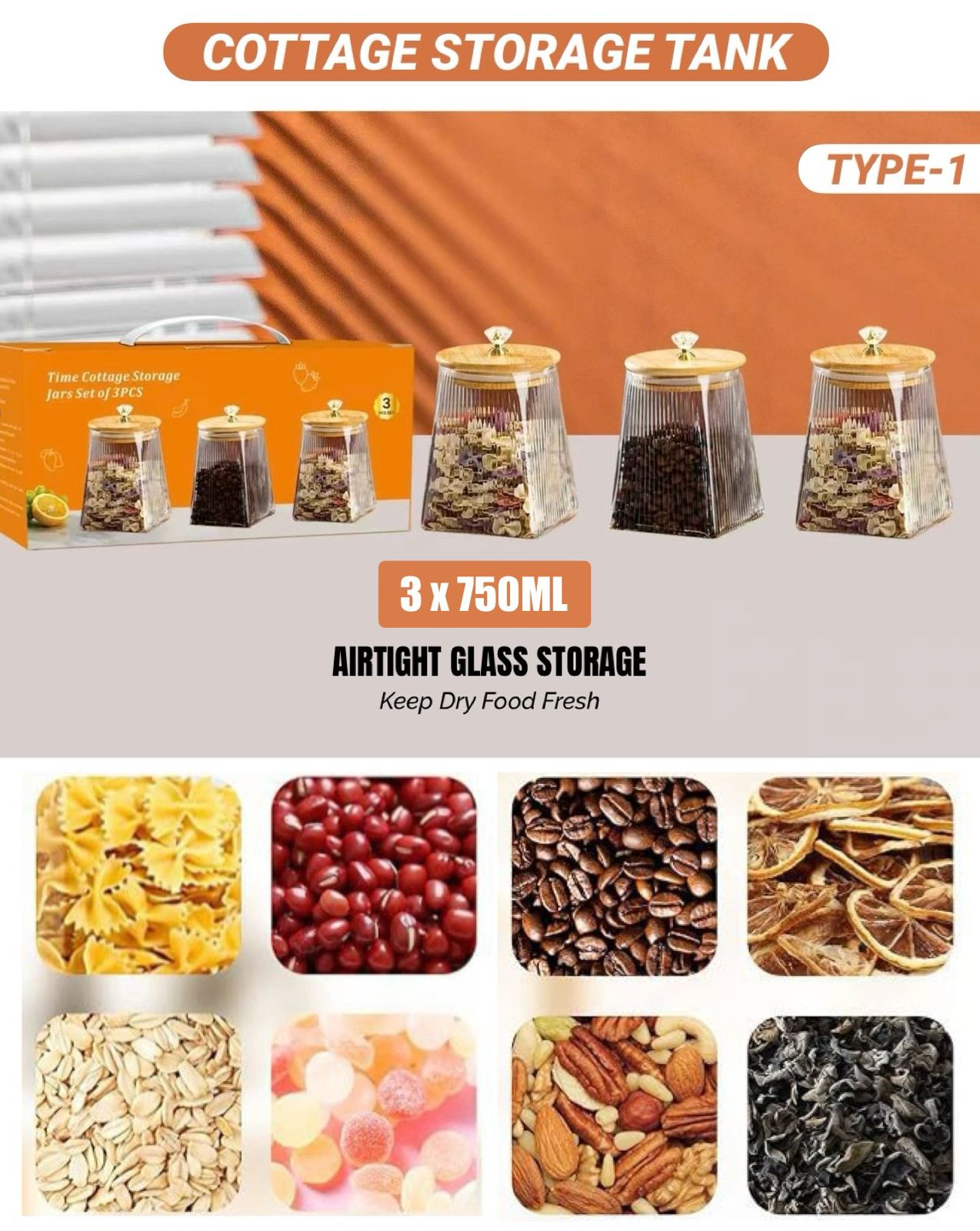 3 x Glass Canister (750ML Each)