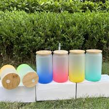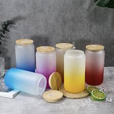 - 1 x 4 pack - 500ml Frosted Glass Cup with Bamboo Lids