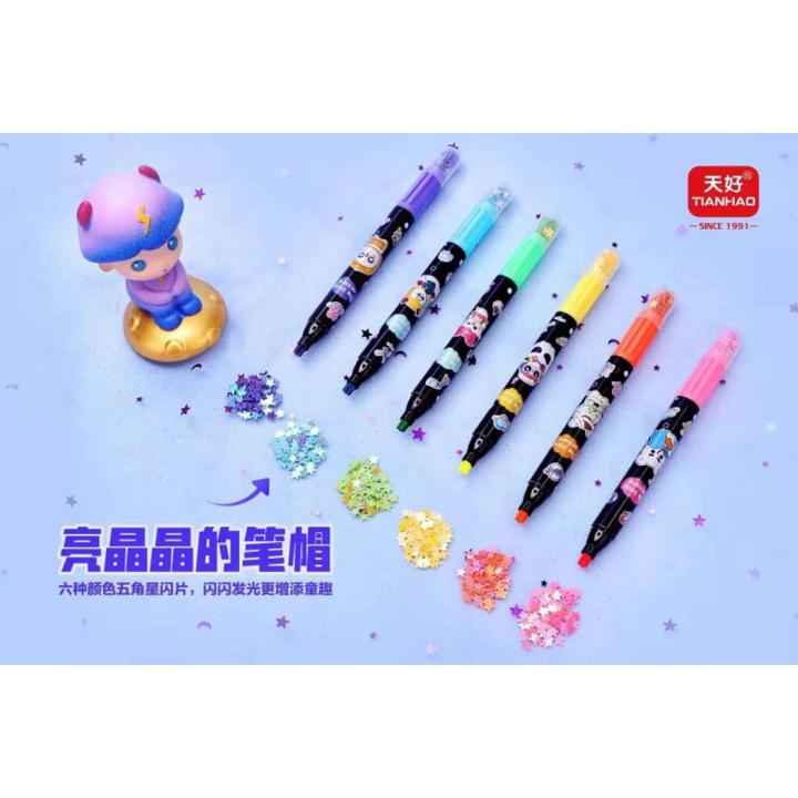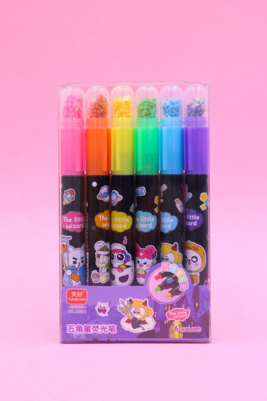 6 Different Color Star Shape Stamp Marker Pen with Star Shape Glitter