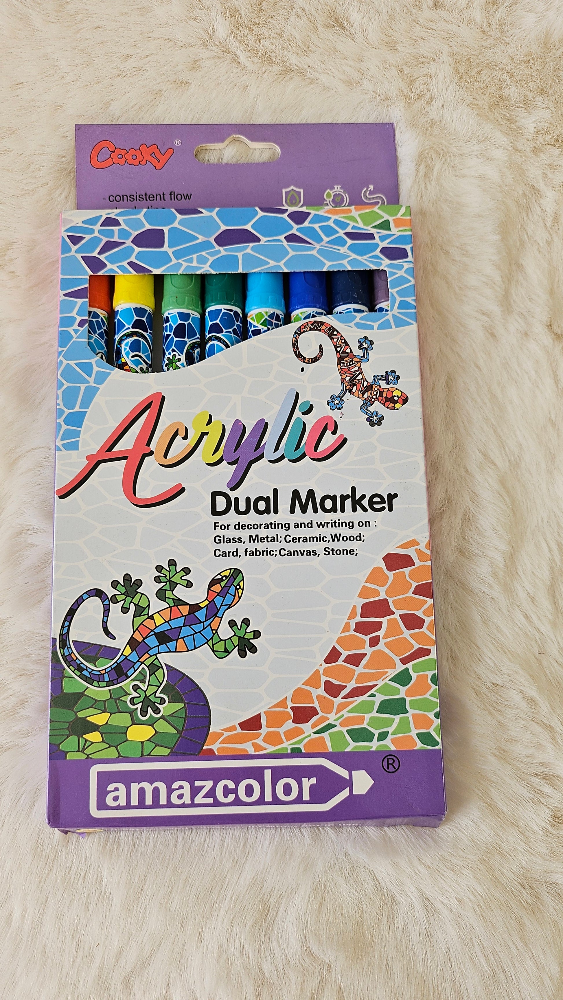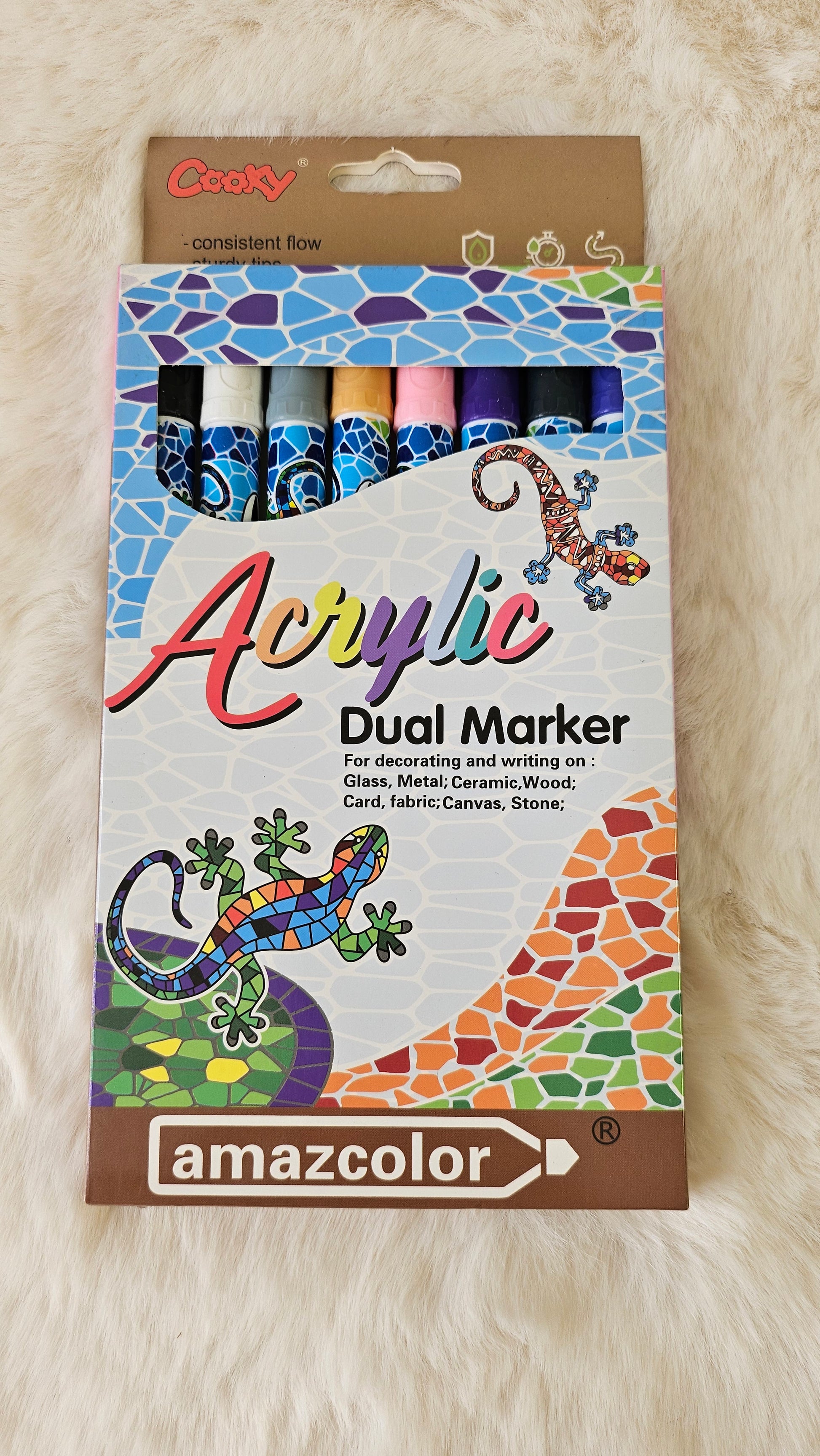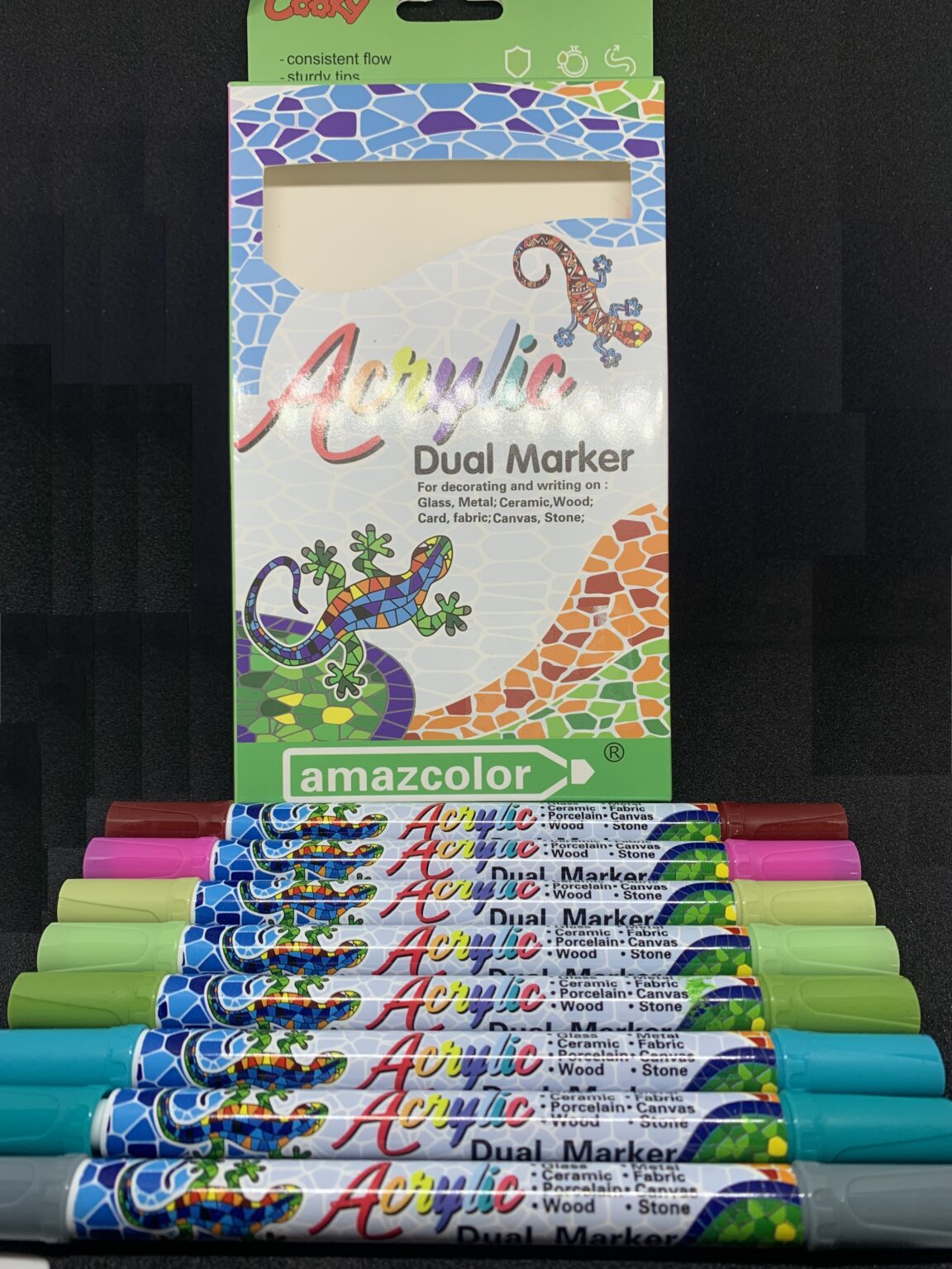 (Dual-tip) This kit is equipped with 8 colors. These double-tip paint pens have an ultra-fine soft tip that can write 1-5mm width words, and work well on finer details and put that outlining touch to your artwork; and a 1mm bullet tip, providing you with great flexibility.