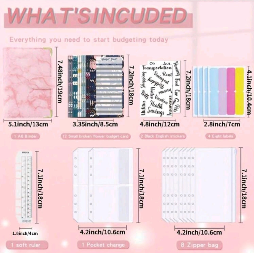 Value Pack: Contains 1 Binder Budget Planner+8 transparent binder pockets+12 colorful budget sheets+4 label stickers (8Pcs/Sheet)+2 Category Stickers+1 ruler.