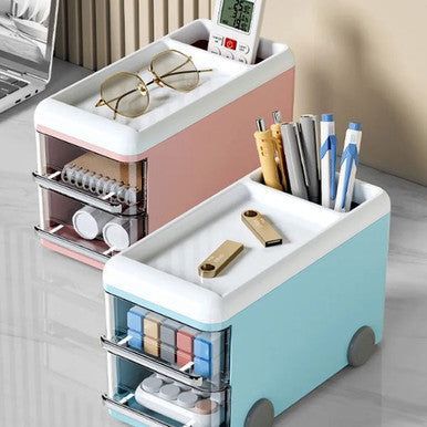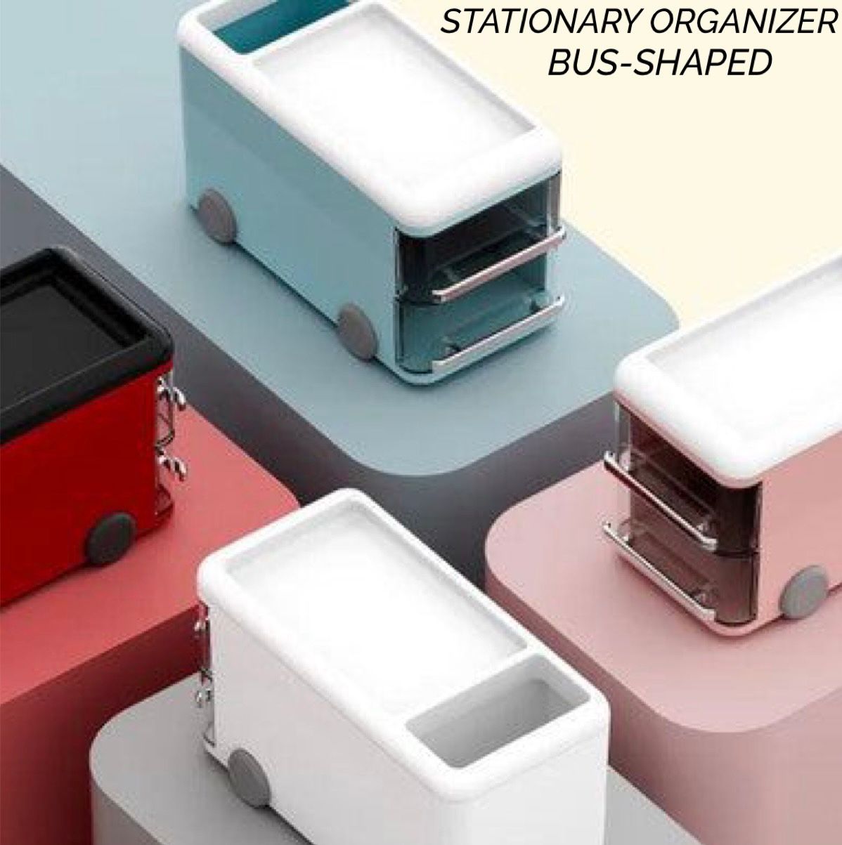 - 2-Layer Cute Bus-Shaped Stationary Organizer With 2 Drawers