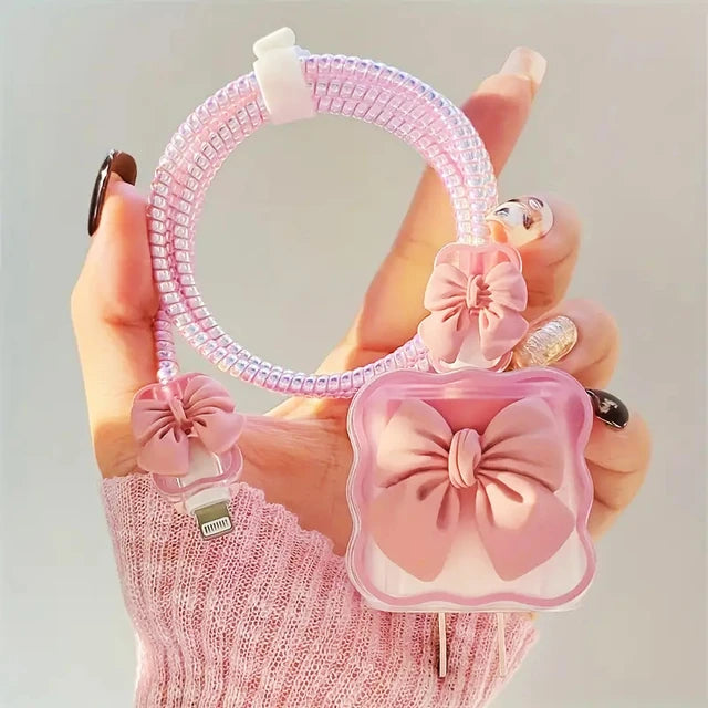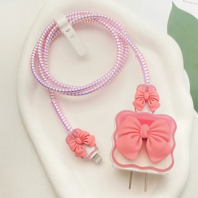 - Package includes: 2 Butterfly Pattern End Protectors + 1 Spiral Protection Rope + 1pc Cute 18W/20W Plug cover +1pc Power Cord Cable Tier. (adapter and cable not included).