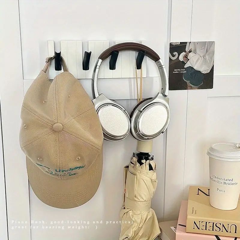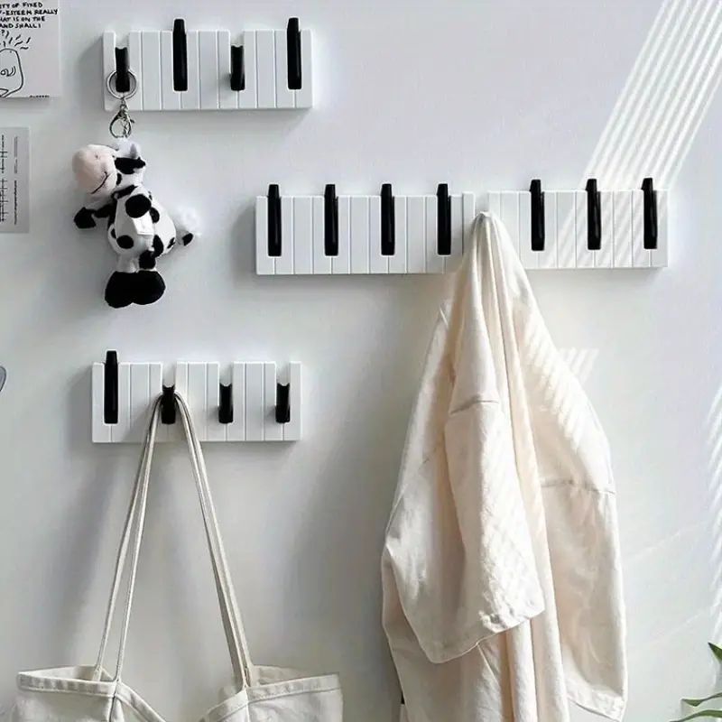 【PIANO HOOKS】1 pack piano-shaped wall-mounted coat racks, each with 4 flip-down hooks. Hidden design, when not in use, push up to hide. The simple and stylish design makes it not only a hook but also an ornament.