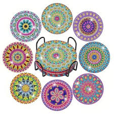 DIY 8 Mandela Coasters With Easter Colors, 5D Diamond Painting Kit, Tools and Rhinestones Included
