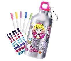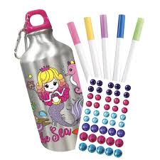 Let your kid show off their creativity with the colour your own water bottle kit.