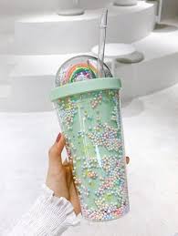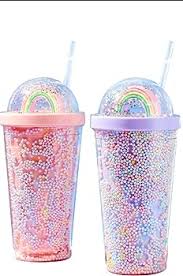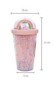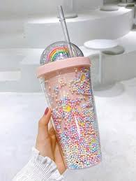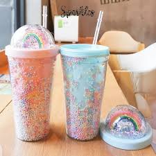 Double Walled Rainbow Plastic Water Cup/Drinking Cup With Straw