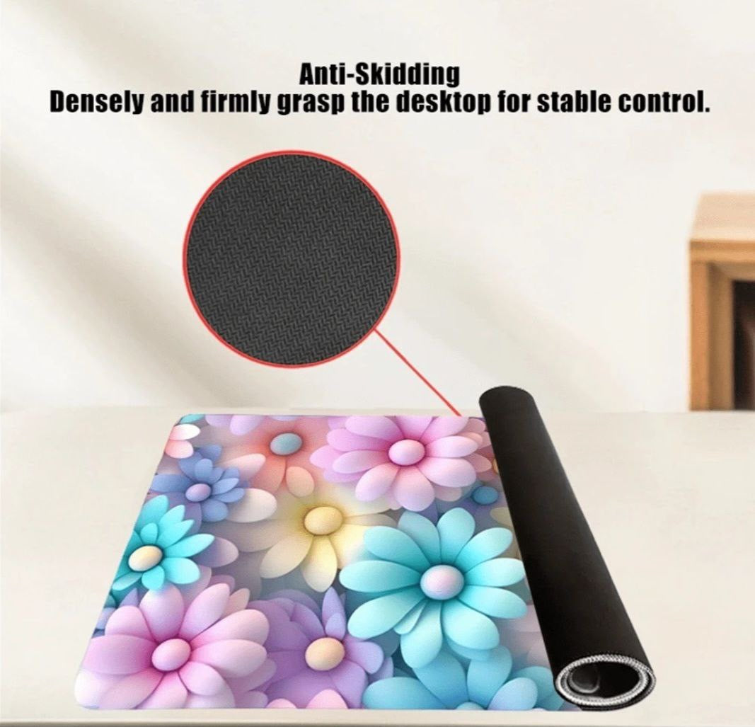 - Large desk mat's measure: 31.4 * 15.9 inches. The desk pad is large enough to have a mouse, gaming keyboard, and other desk items Just immerse into your work or games without worrying about the annoying mouse pad movement.