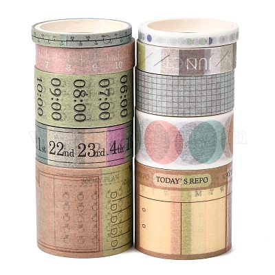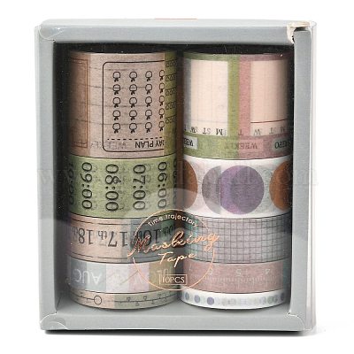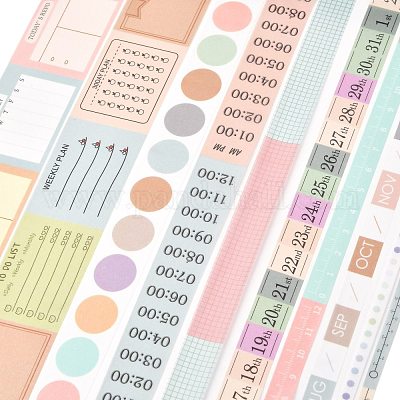 DIY Scrapbook Different Sizes Decorative Paper Tapes, Adhesive Tapes, Time Theme Design Gift Wrapping Tape, for DIY Scrapbooking Supplie Gift Decoration, Mixed Color