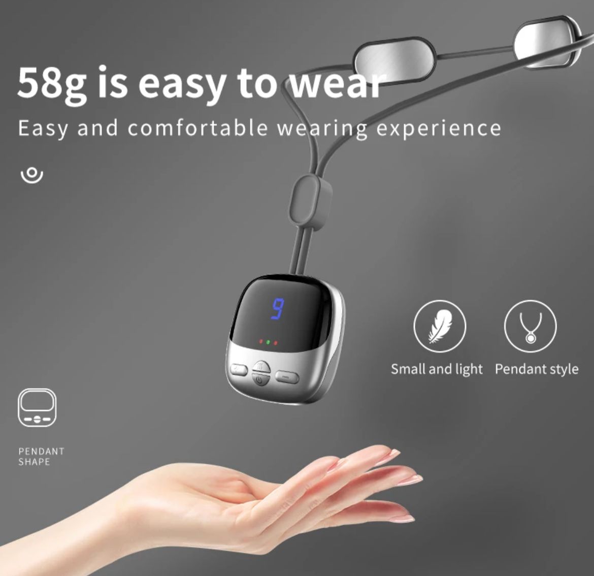 That's why we released our ultra portable smart pendant massager. Small enough to fit in your pocket, it's like having your own personal masseuse on hand whenever you need it. With triple action TENS, EMS and heat functionality now you can find relief from neck and shoulder pain wherever you are.