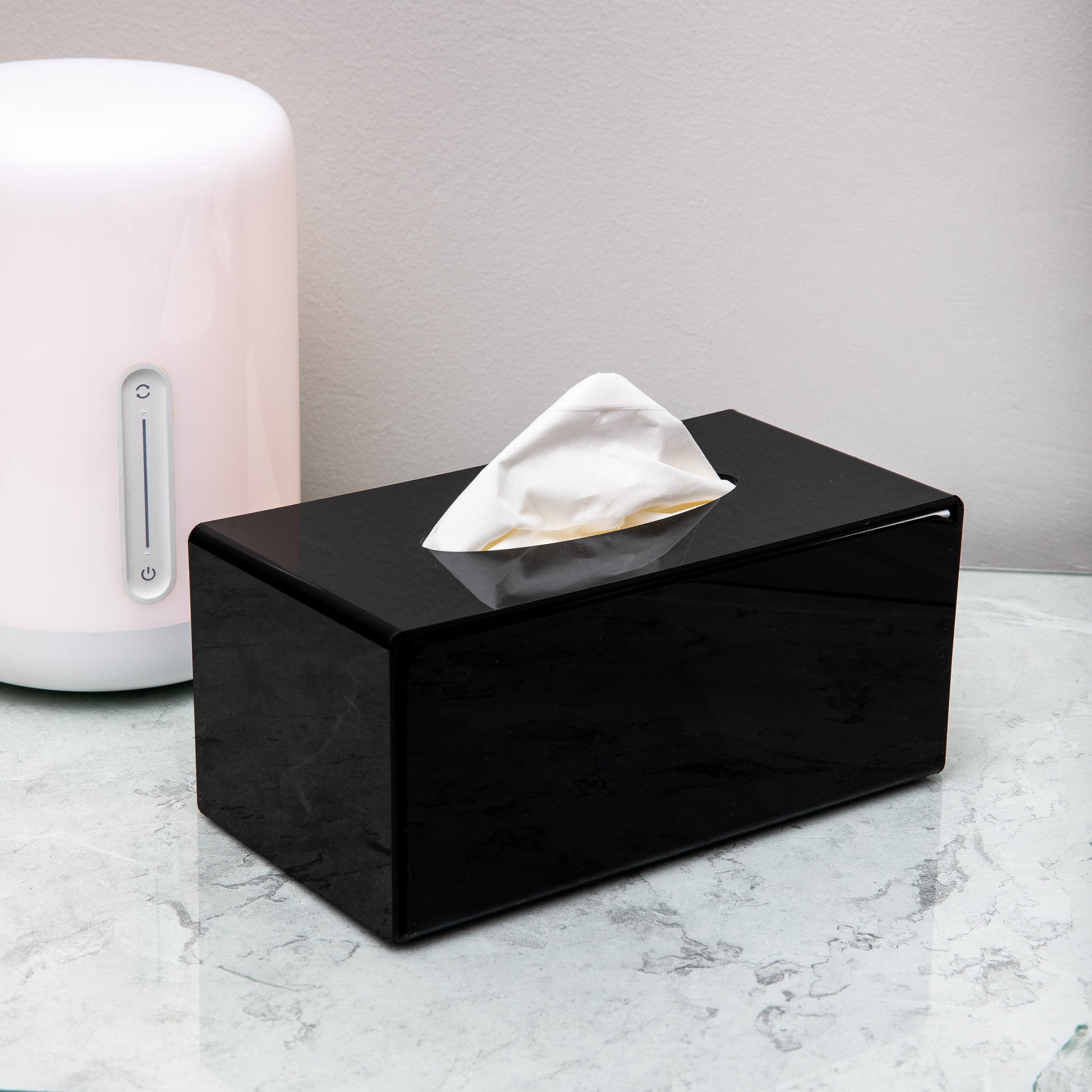 Elevate your home or office decor with our Premium Black Acrylic Tissue Box. Designed with a sleek, glossy finish, this elegant tissue box seamlessly blends style and functionality. The innovative slide-in feature holds up to 200 tissues, ensuring convenience and ample supply.