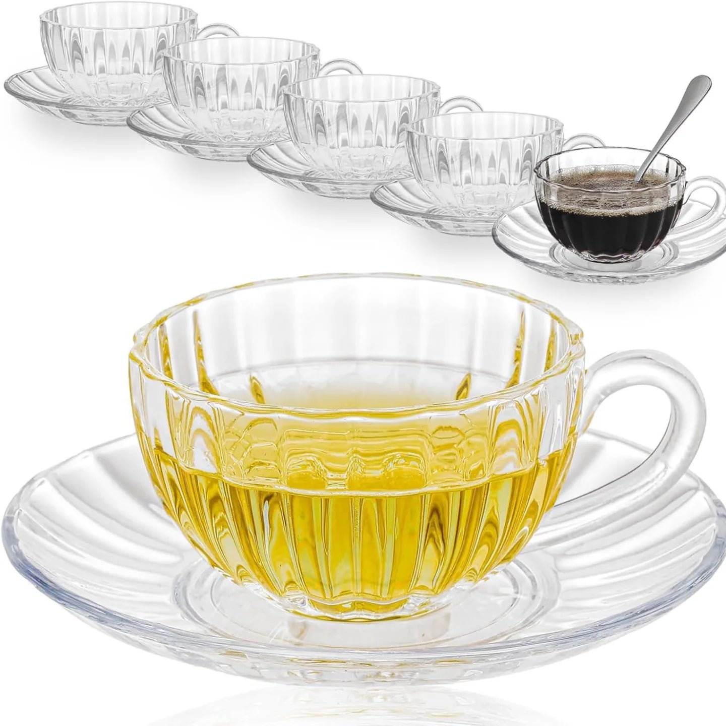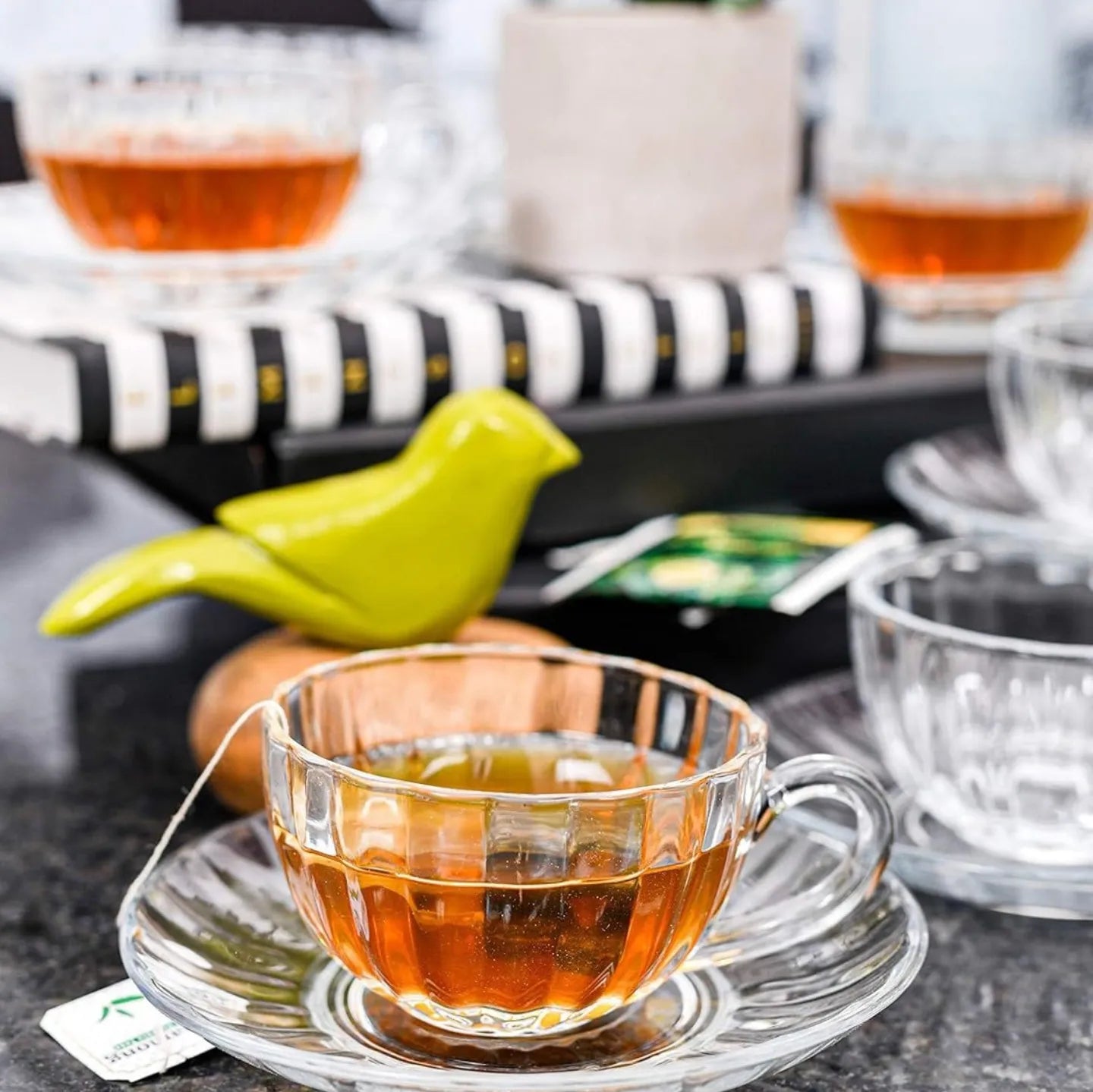*Set of 6 Pumpkin Glass Cup & Saucer Set*