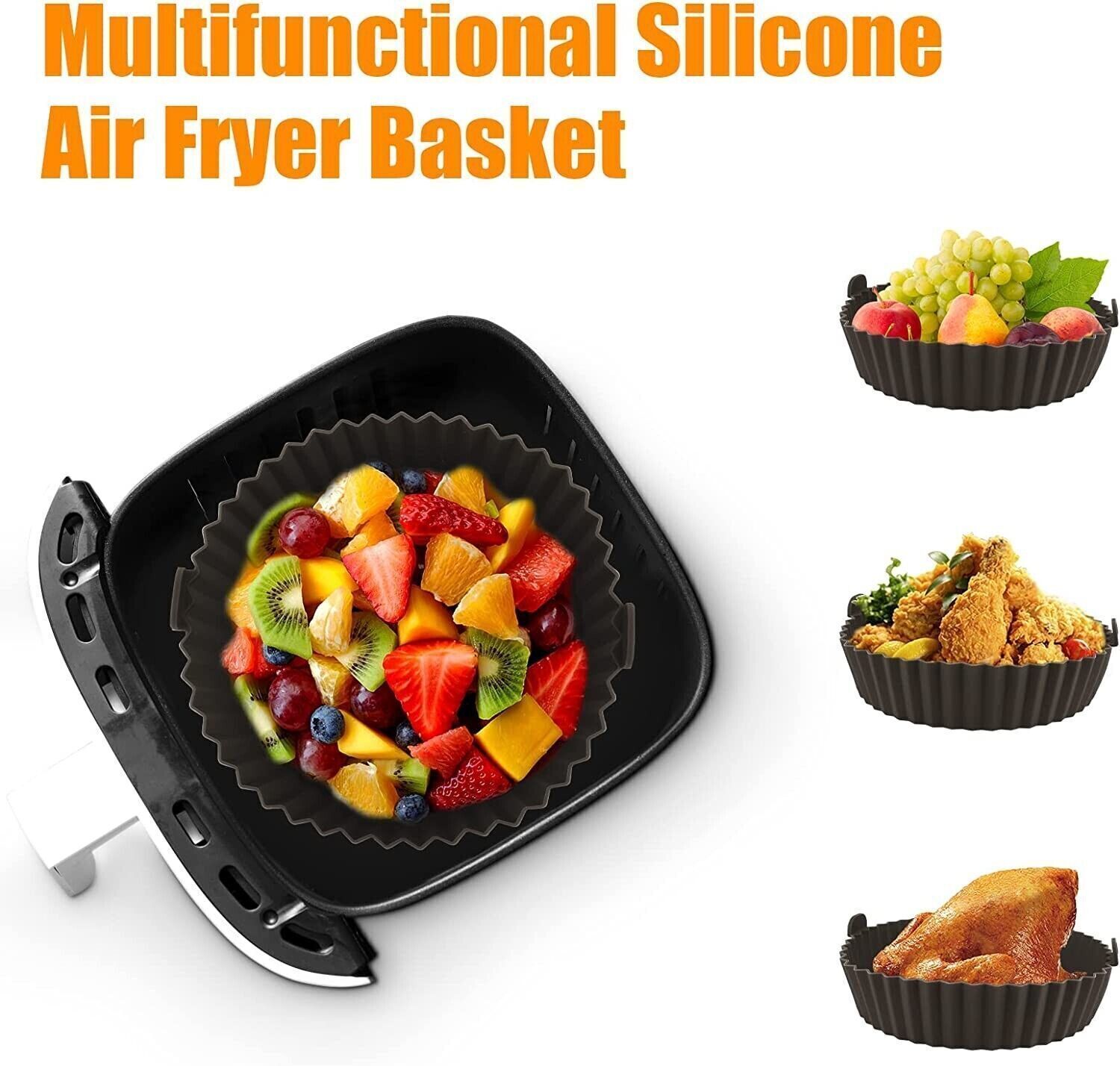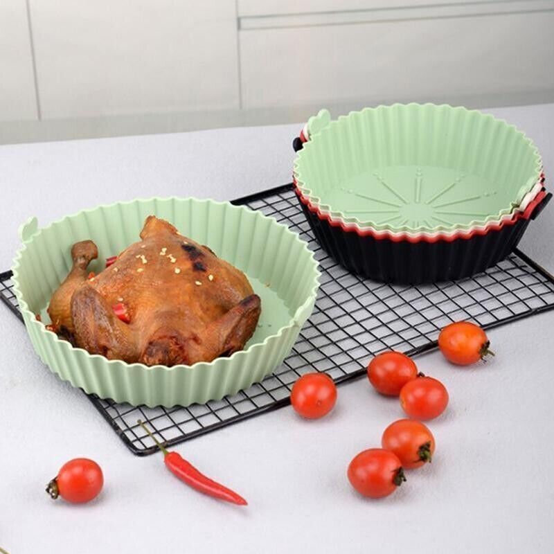 This Silicone Air Fryer Liner is perfect for reuse and easy cleaning. Pop it in your air fryer and simply clean it when done. The inner pot of these non-stick disposable air fryers is designed in the shape of a round bowl that doesn't need to be, folded, cut, or bent like paper air fryer liners and can be dropped right in when you're ready to cook. The raised edges protect the sides of the fryer and food from sticking to them and ensure that no delicious juices are lost or messed in the air fryer