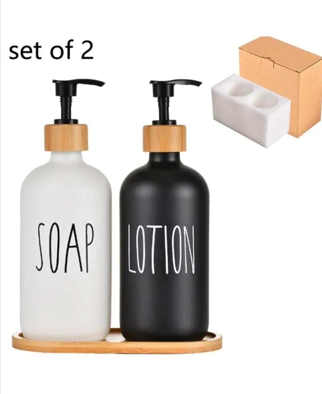 *Soap & Lotion Dispenser Set- This bathroom soap dispenser set contains a 17.5OZ black SOAP dispenser and a 17.5 OZ white LOTION dispenser, 2 bamboo pump heads and a bamboo tray. This is a coutertop accessories decor that can make you feel nice.