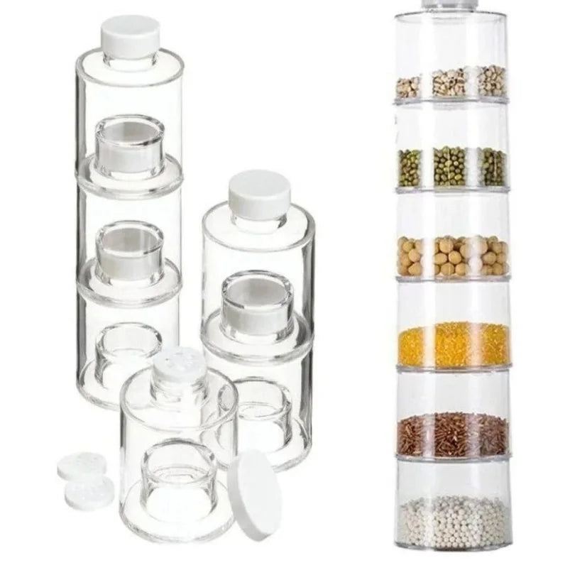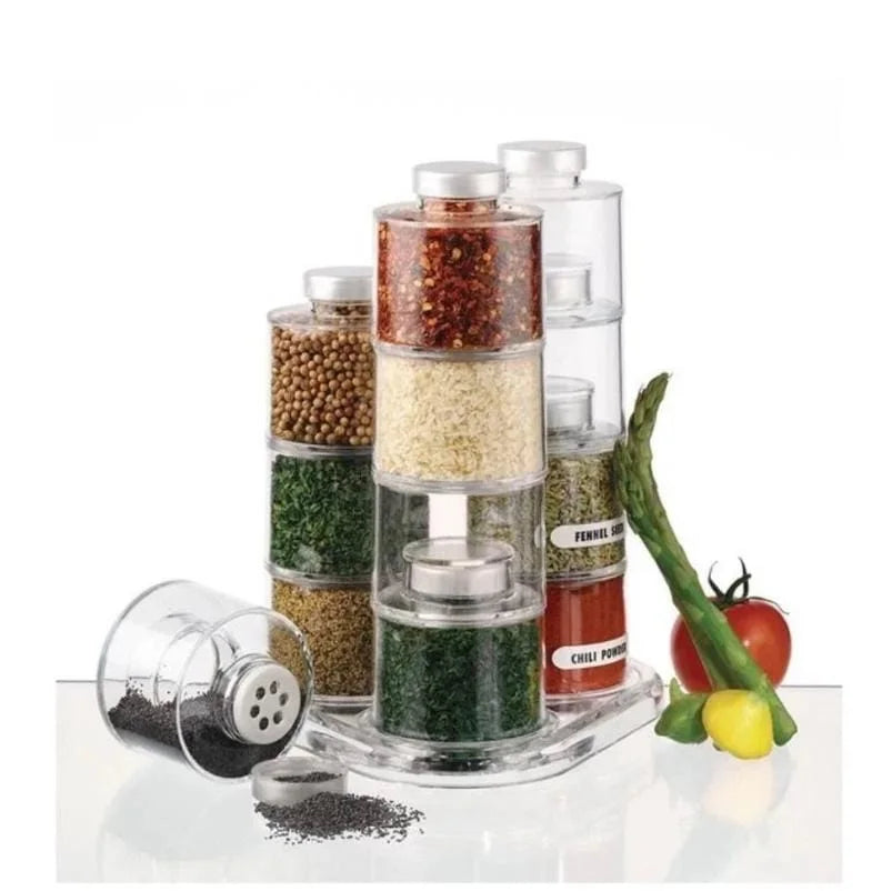 6 x Spice Tower Stacking Bottles With Sift Lids