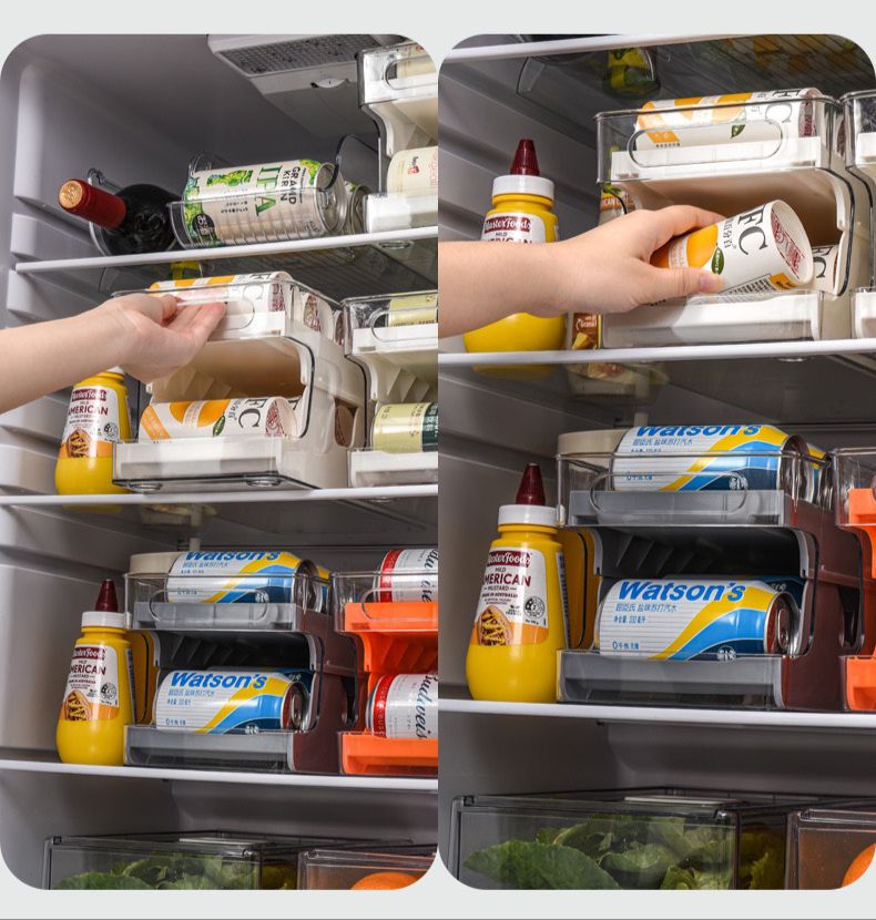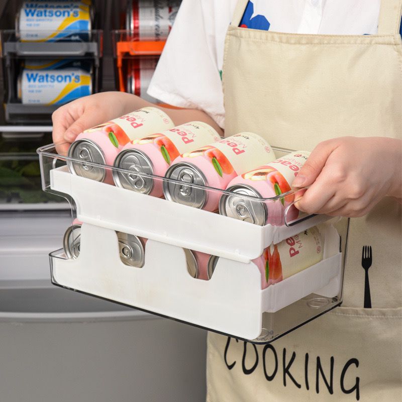 Double-layer large capacity, up to 10 cans can be stored. Automatic roll-down design--When you take out the cans from the lower layer, the upper cans will automatically roll off to replenish, which is very convenient.