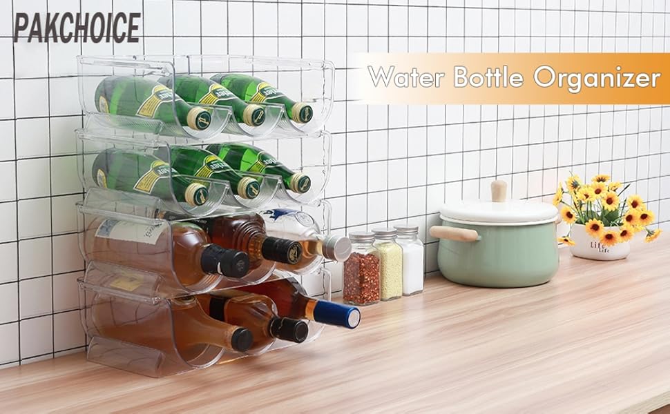 Stackable Plastic Wine Rack Holder for Pantry, Kitchen, Fridge, Ideal Storage for Wine, Soda, Pop and Beer, Clear