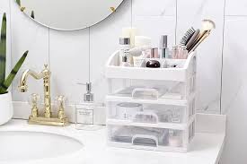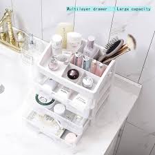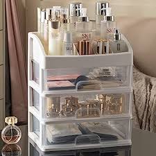 The cosmetic storage box has 3 drawers and a top storage layer. Can well organize your favorite cosmetics, skin care products, lipsticks, makeup brushes, nail polish, eyebrow pencils, eyeliner pens, jewelry, etc.