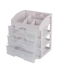 White Clear Makeup Organiser with 3 Drawers & Lipstick Slot Cosmetic Box