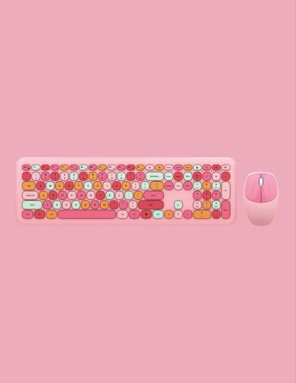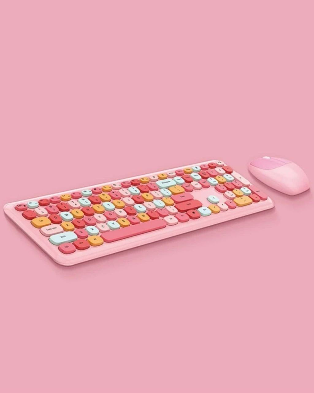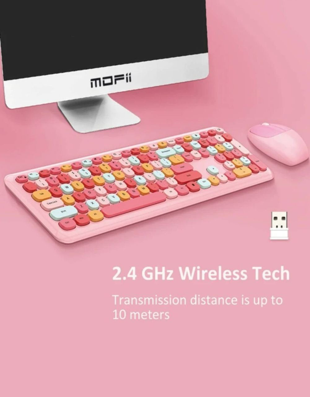 Wireless Keyboard Mouse Set Includes Cute Wireless Keyboard with Round Retro Style Colorful Key and Wireless Optical Mice. ALL-IN-ONE PC GAMER VALUE KIT.